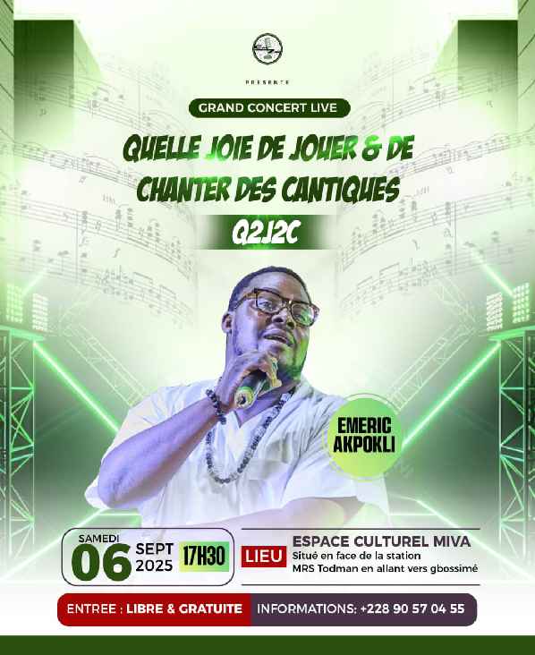 L’air vibrera bientôt d’une ferveur mélodieuse et d’une harmonie céleste. Ce samedi 6 septembre 2025 à 17 h 30, l’Espace Culturel Miva s’apprête à se transformer en un véritable sanctuaire sonore pour accueillir le Grand Concert Live « Quelle joie de jouer & de chanter des cantiques » (Q2J2C). Sous les projecteurs, Emeric Akpokli, artiste […]